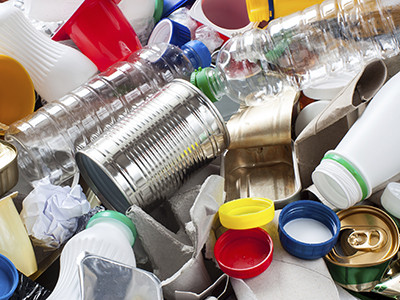 After a flood event, most debris can be disposed of in one container. Flood-damaged recyclables or food waste can be thrown away in the trash.